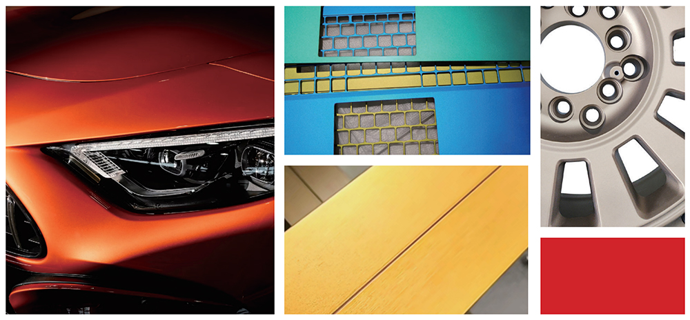 通过有机/无机包覆,在铝片表面形成一层均匀致密的致色层,使得铝颜料具有高金属质感和遮盖效果、耐候性、耐酸碱等优异性能,具有丰富多彩的颜色效果。有机彩铝是有机色粉和银浆接枝,采用高分子保护,颜色丰富稳定,耐温良好。无机彩铝是水性银浆包覆氧化铁,类似珠光效果同时具备高金属质感,耐高温,耐酸碱。广泛应用于粉末涂料、汽车涂料、油墨、3C、UV等行业。